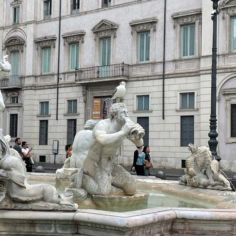 This was the plaza right by the dinner location. Really cool fountain with four characters representing what were believed to be the world's four major rivers at the time. Seagulls were also fans.